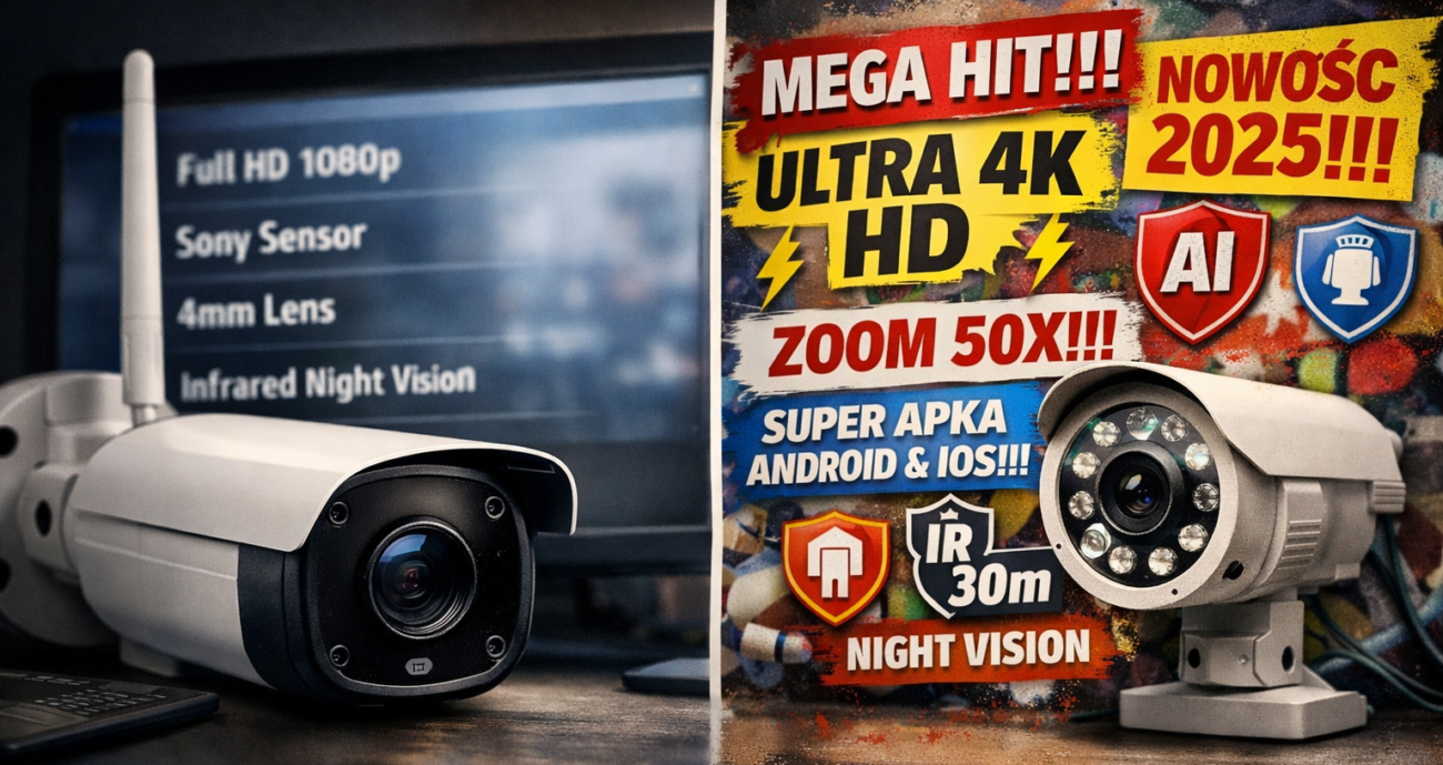 Jeśli kiedykolwiek przeglądałeś oferty kamer na Allegro, Amazonie czy innych marketplace’ach, na pewno widziałeś tytuły, które wyglądają jak zlepek wszystkiego, co da się wpisać w jedno pole tekstowe. „KAMERA WIFI 4K 8MP PTZ AI FULL COLOR NIGHT VISION ZOOM 64X OUTDOOR IP66 HIT”. I to jeszcze zapisane wielkimi literami.